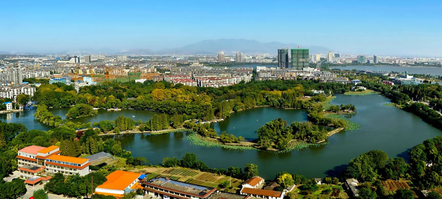 湖泊主要分布在沿江宿松、望江和安慶市區(qū),總面積在1147平方千米左右。面積超過100平方千米的湖泊有6個。其中宿松縣與湖北省黃梅縣交界處的龍感湖東西長28千米,南北最寬處20千米,平均水深3.7米,常年水面在350平方千米以上,且與大官湖(湖面積156平方千米)、黃湖(湖面積133平方千米)、泊湖(湖面積180平方千米)連成一片,岸線曲折,湖汊眾多,湖水位穩(wěn)定,水產資源豐富。其它主要湖泊還有望江縣的武昌湖(湖面積122平方千米),跨桐城和宜秀區(qū)的菜子湖(湖面積200平方千米),跨宜秀、大觀區(qū)和懷寧縣的石門湖(湖水面隨長江水位的變化而變化較大),市郊的破罡湖(湖面積34平方千米)、石塘湖(湖面積20平方千米)等。