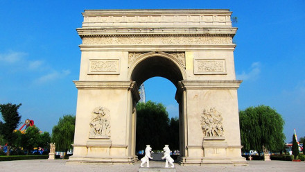 凱旋門(mén)是為了紀(jì)念拿破侖一世在1805年12月2日的一次戰(zhàn)役中大敗奧俄聯(lián)軍的勝利而建的。在1806年2月12日,根據(jù)拿破侖一世親自批準(zhǔn)的計(jì)劃,按照著名設(shè)計(jì)師戛爾格蘭的設(shè)計(jì)圖紙施工,歷時(shí)30年,于1836年7月29日竣工。八里河風(fēng)景區(qū)的雄獅凱旋門(mén)是按原建筑的1/3縮小。