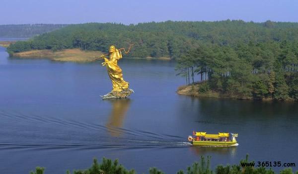 岱山湖:位于肥東縣與全椒縣交界處,東距合肥市區(qū)57km,西距江蘇省城南京市只有96km。岱山湖地屬亞熱帶氣候,溫暖濕潤,年平均氣溫15.7攝氏度,冬暖夏涼,四面青山環(huán)繞,山水交融,平均水深20米,最深處46米。水面有寬有窄,湖邊有灣有港,自成體系,具有開展各類水上項目的理想環(huán)境,湖邊山區(qū)森林覆蓋率90%以上,有400多種植物。岱山湖以其獨特的湖光山色聞名遐爾,“山不高而層巒疊嶂,水不大而氣象萬千”,勾畫出了岱山湖的景色特征。
