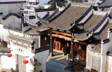 徽商大宅院,又名“西園”,是將散落在歙縣范圍內(nèi)瀕臨坍塌的26座明末、清代及民國時期具有徽派特色的建筑進行拆遷和修繕,按照“復(fù)原”的原則,整體搬進了西園。大宅院內(nèi)的古徽州“三雕”(石雕、木雕、磚雕)多達(dá)14000多處。整座古建筑群集牌坊、戲臺、亭閣、花園、水榭等于一體,為組合式的宅第群體,有宅第26座、房屋數(shù)百間、天井36個、柱子1580根。徽商大宅院內(nèi)建多座反映徽文化的博物館,如徽派建筑歷史博物館、徽州雕刻精品館、徽州民俗館、徽州歷代名人館等。