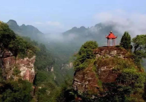 仙人花轎:紅色丹霞巖層,經(jīng)長期的雨侵風(fēng)蝕,自然形成獨(dú)立而方正的山體景觀。