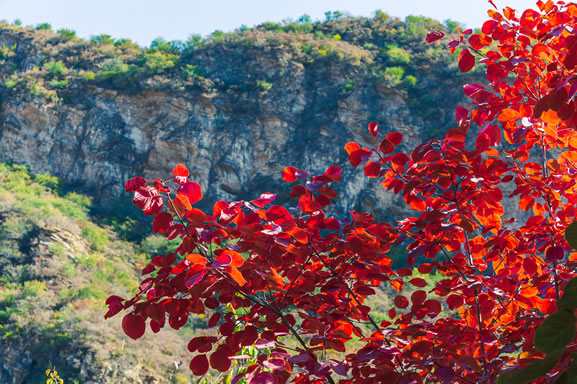 坡峰嶺景區(qū)位于房山區(qū)周口店鎮(zhèn)黃山店村,距離北京市區(qū)50公里。景區(qū)總面積約2000畝,海拔落差370米,山體平緩,上下山環(huán)形步道全程6千米,有黃櫨、元寶楓等八個品種、十余萬株紅葉植物,有好漢巖、鷹嘴巖、百年黃櫨王、天湖、玉虛宮等各類景點。