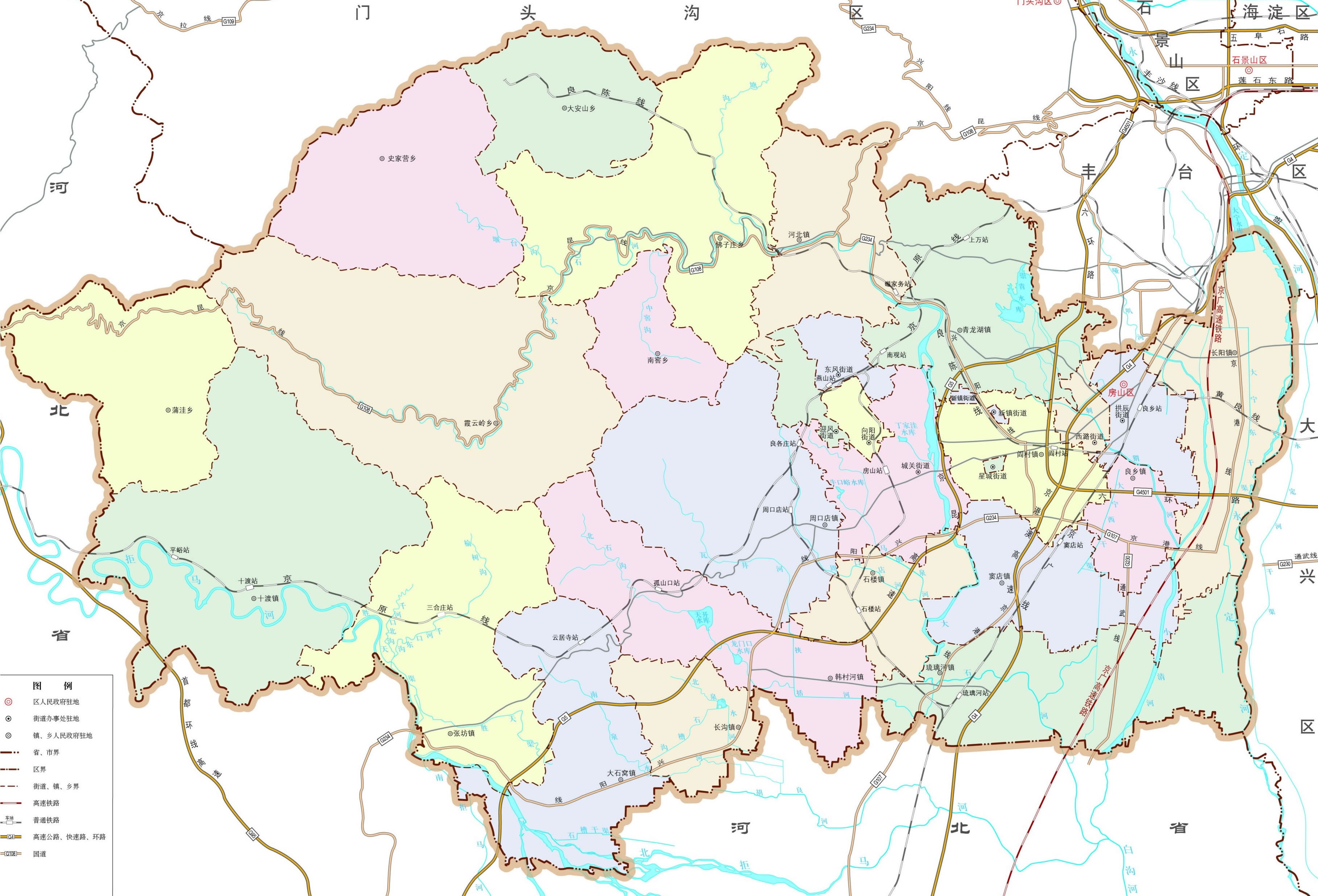 房山區(qū)轄8個街道、3個地區(qū)、11個鎮(zhèn)、6個鄉(xiāng):