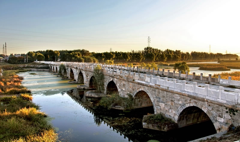 琉璃河大橋 琉璃河大橋,位于琉璃河段的京石公路上,是房山區(qū)境內(nèi)最大的石橋,其規(guī)模僅次于盧溝橋。琉璃河又名大石河,古稱圣水,流經(jīng)這里東行,匯入拒馬河,每到汛期,原建木橋常被沖毀。嘉靖十八年(1539年),修此橋。嘉靖二十五年建成。石橋南北向,橫跨琉璃河上,全長(zhǎng)165.5米,寬10.3米,高8余米,共11孔,中孔最大。拱券正中雕有精美的獸頭。橋體全部用巨大的石塊砌筑,橋上建有實(shí)心欄板和望柱,其上均雕有海棠線等紋飾。嘉靖四十年(1561年),向南北兩方督修路堤。堤寬19.8米,高近4米,總長(zhǎng)約2000米。堤面鋪以巨型條石。為傳說中的五里長(zhǎng)街。從修橋到路堤建成,前后20余年。琉璃河石橋,是北京地區(qū)保存較為完好的古代石橋之一。 2013年3月,琉璃河大橋被國(guó)務(wù)院公布為第七批全國(guó)重點(diǎn)文物保護(hù)單位。