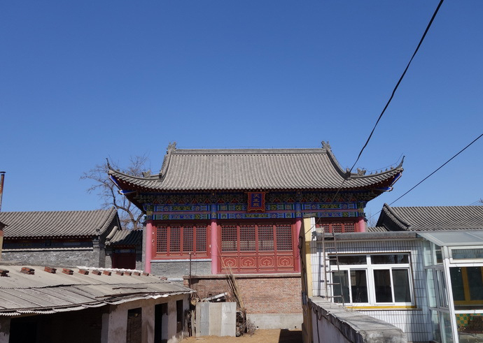 沿村娘娘廟 沿村娘娘廟始建于明代,清代中期重修,2011年在拆除村辦企業(yè)大棚后顯露出來。依地勢(shì)坐南朝北。原為四合式,由于時(shí)代的變遷,周圍建筑已不存,現(xiàn)僅存前、后兩進(jìn)殿宇,前殿為硬山筒瓦卷棚頂,前后出廊;后殿為硬山筒瓦大式,前出廊。兩進(jìn)殿均為石望板頂,廊心墻處為軟心,梁檁彩繪及壁畫仍清晰可見。