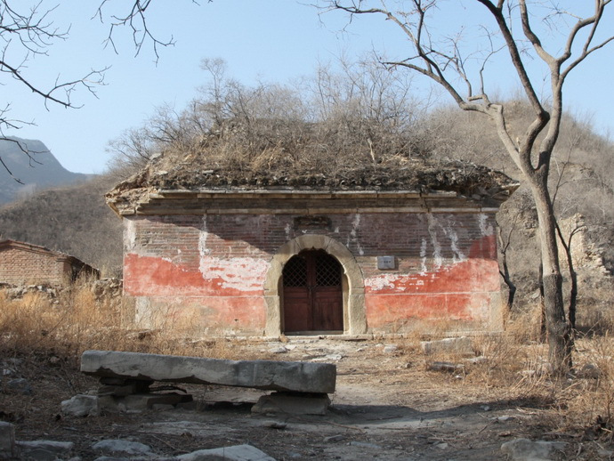 廣智禪寺 廣智禪寺坐西朝東,占地5畝左右,始建于明建文時(shí)期,清代曾修繕。原有兩進(jìn)院落,前低后高,梯狀布局。山門(mén)早已無(wú)存,門(mén)后為紅墻觀(guān)音寶殿,為全部磚石結(jié)構(gòu)的穹窿頂無(wú)梁殿,面闊9.50米,進(jìn)深8.40米(面闊與進(jìn)深相差不大,幾近正方形),據(jù)說(shuō)是北京地區(qū)跨度最大穹窿頂古建筑。四面無(wú)窗,只有正面一個(gè)青石拱券門(mén),廡殿頂灰筒瓦屋面,門(mén)上原有石額:“觀(guān)音寶殿”,2013年秋被盜走。殿內(nèi)原有漢白玉雕須彌座,現(xiàn)也已無(wú)存。