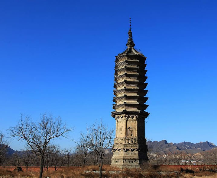 豆各莊塔 豆各莊塔位于青龍湖鎮(zhèn)豆各莊村,為房山區(qū)文物保護(hù)單位。始建于唐代。坐西朝東,是一座八角密檐式磚塔,通高約15米。塔身上有磚雕。八面磚雕輪、螺、傘、蓋、花、罐、魚(yú)、長(zhǎng)的佛八寶圖像。塔基上端為三層磚雕仰蓮。東面辟券門(mén),其它各面分別開(kāi)設(shè)磚雕的假門(mén)、假窗。塔身之上是八層仿樓閣密檐。第一層檐下裝飾斗拱。其它每?jī)蓪恿裰g做成仰、覆蓮瓣。檐子為疊澀式。塔剎由下大上小的兩層磚雕蓮花組成。這座塔的特點(diǎn)是采用蓮花裝飾的成分多:整個(gè)塔由基座上的三層仰蓮?fù)衅,門(mén)窗層以上每?jī)蓪娱苤醒胗盅b飾上下對(duì)稱(chēng)的仰覆蓮瓣,共有八層;再用蓮花封頂。 風(fēng)景名勝