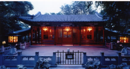 一座宏偉莊重的五開間廳堂,也是萃錦園中路最主要的建筑。其前出抱廈,后帶平臺(tái),兩側(cè)有游廊通向東西兩廡。它在園中蝠池、邀月臺(tái)、水榭、大戲樓等建筑的簇?fù)硐,顯得富貴堂皇,景致優(yōu)美。這里原是主人游園時(shí)吟詩、作畫的地方,也曾是恭親王奕訢宴請重要賓客的處所。