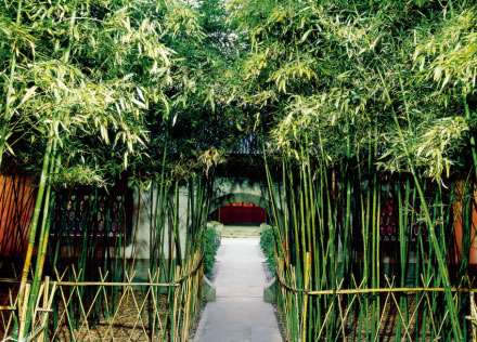 與“蓺蔬圃”一街之隔的正北部是一套清幽雅致的院落。恭王府三絕之一的大戲樓就坐落在院中央。穿過垂花門進(jìn)入第一進(jìn)院落——竹子院。院東側(cè)的雅舍名為“香雪塢”,是恭親王的福晉、側(cè)福晉們游園觀戲的小憩之處。據(jù)說嫡福晉十分喜歡搖曳的翠竹,所以小院四角種的都是竹子。 蓺蔬圃