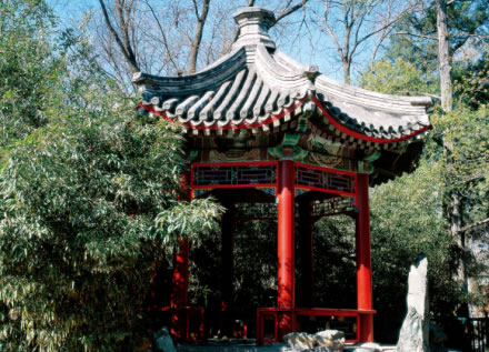其建筑彩繪上的斑竹,全部是由油工一筆一筆畫上的。該建筑的造型和彩畫被譽(yù)為“古建筑中只此一例”,在花園主山和府墻的蔽護(hù)下,幽靜而秀美,恭親王奕訢經(jīng)常在此和大臣們謀劃軍國大事。這里也是個(gè)消夏納涼的好地方。后成為恭親王之孫、著名書法家溥儒(溥心畬)的書房。