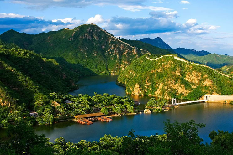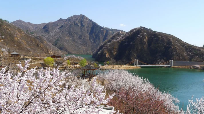 黃花城水長城 黃花城水長城位于九渡河鎮(zhèn)境內,距北京市區(qū)65公里,是以奇而著稱,融山川、碧水、古長城為一體的旅游休閑勝地。而這里的“ 三絕景 ”更是引人入勝,嘆為觀止。 “一絕”建于明永樂年間的長城盤旋于山脊之上,環(huán)繞在灝明湖畔,景色秀美壯觀。 “二絕”湖水將長城自然斷開,形成長城戲水、水沒長城的奇特景觀。 “三絕”明代板栗園,古樹盤根錯節(jié),形態(tài)各異。那巨龍戲珠之軀和撐掩蒼天之冠,令人贊不絕口。 沿古道、過木橋、涉小溪、跨怪石,上行可達黑龍?zhí)丁>皡^(qū)還有龍尾洞、紫翠峰、醉女山、石浪谷、情人峰、三珠連潭等自然景觀。 地名由來 因鎮(zhèn)域中部最大村名九渡河而得名。 地方特產 九渡河鎮(zhèn)為懷柔區(qū)板栗、核桃生產基地之一,另有梨、蘋果、柿子、紅果等。 |