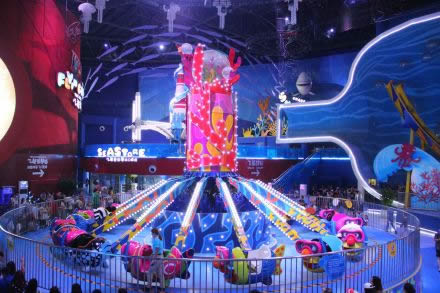 潛水魚:緩緩旋轉(zhuǎn)的魚群可以帶領(lǐng)游客上升和跌落,這里還是主題燈光秀的焦點(diǎn)所在。