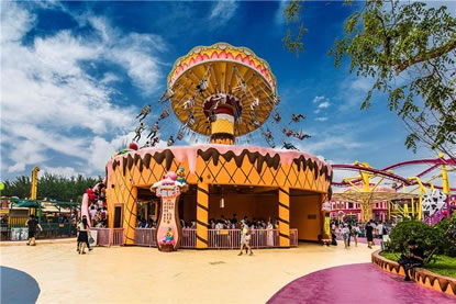 歡樂谷第四期在原螞蟻王國的區(qū)域重建,13個(gè)游樂項(xiàng)目分別用不同的甜品造型筑造包裝。