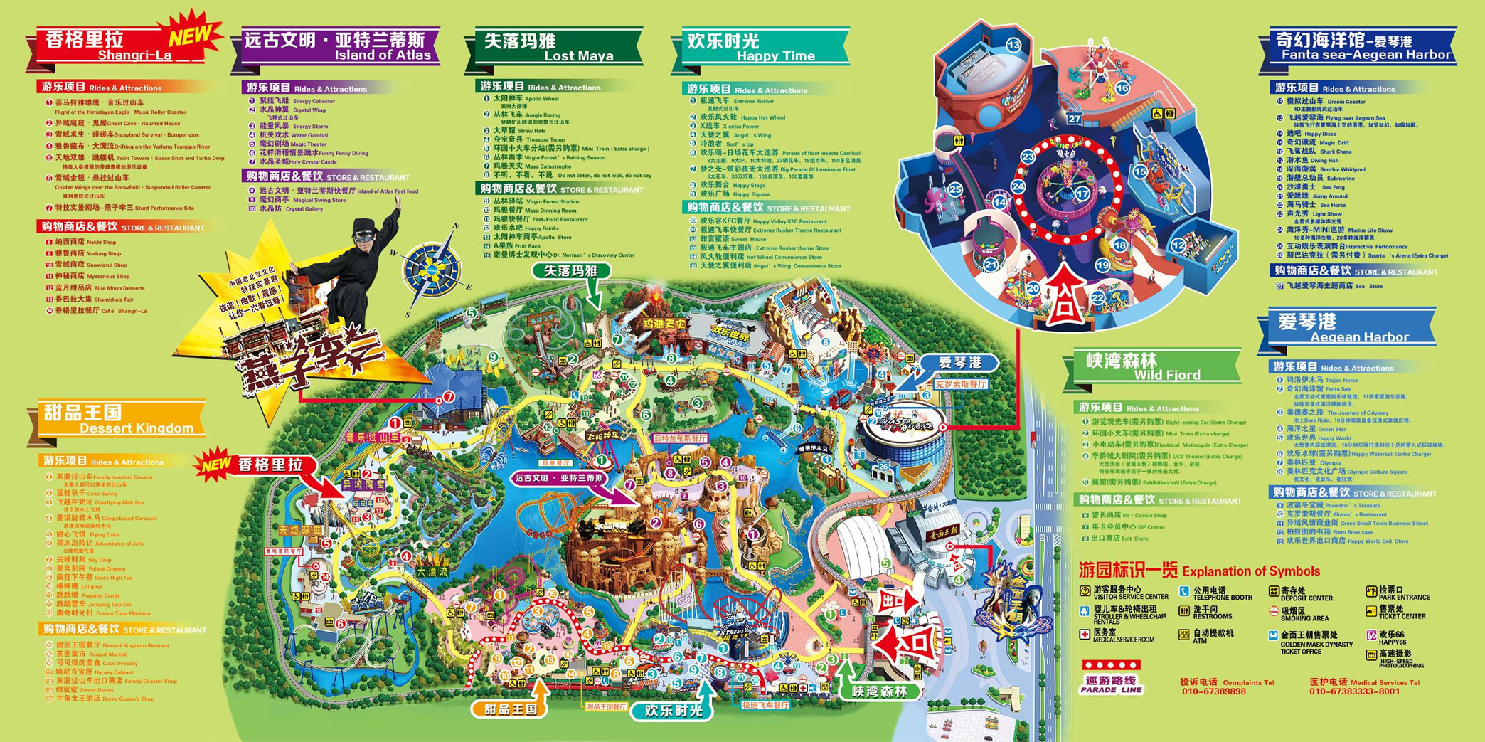北京歡樂谷由峽灣森林、愛琴港、失落瑪雅、香格里拉、甜品王國、亞特蘭蒂斯、歡樂時(shí)光、七大文化主題區(qū)(另外還有位于愛琴港的奇幻海洋館、歡樂世界主題漂流三期項(xiàng)目)組成,通過主題文化包裝及故事演繹,以建筑、雕塑、園林、壁畫、表演、游樂等多種形式向游客展示了地球的生態(tài)環(huán)境與地域文化,園區(qū)內(nèi)精選世界經(jīng)典文明和創(chuàng)意智慧,設(shè)置了50余項(xiàng)主題景觀、10余項(xiàng)主題表演、30多項(xiàng)主題游樂設(shè)施、20余項(xiàng)主題游戲及商業(yè)輔助設(shè)施。30多萬平方米的綠化、8萬平方米的湖面給予歡樂谷良好的生態(tài)環(huán)境;七大主題區(qū)域給予歡樂谷世界各地的人文氣質(zhì);并且具有國際國內(nèi)雙重標(biāo)準(zhǔn)的安全檢測、人性化的服務(wù)配套和智能化的全園信息系統(tǒng)。。
