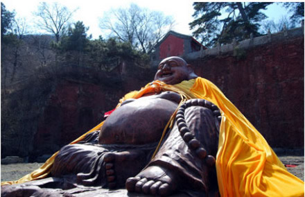 彌勒佛:千佛閣上坐神佛,納得天下福滿門。千年香樟木雕彌勒佛,作為戒臺寺唯一一尊露天佛,常得日月之光,納天地靈氣,立于千佛閣上修得萬佛之心,用萬世不變的歡喜笑顏,用大肚笑納天下事,也容載著天下人的希望。彌勒佛即未來佛,俗稱大肚彌勒,他強調要大度能容,不要計較人世間的是非憎愛。大肚彌勒寓神奇于平淡,示美好于丑拙,顯莊嚴于詼諧,現(xiàn)慈悲于揶揄,代表了中華民族寬容、和善、智慧、幽默、快樂的精神。香樟木質地堅硬,且具香氣,是明清時期宮廷木器三大主要用材之一。香樟木年份越久越珍貴,千年香樟木自然就成了可遇不可求的無價之寶。戒臺寺此件木雕大佛系為一整塊千年香樟木根雕,雕工精美,形態(tài)可鞠,盤腿而坐,袒胸露腹,自然形態(tài)惟妙惟肖。