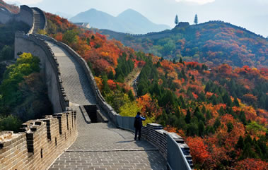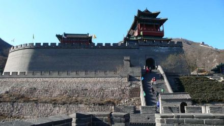 居庸關(guān)長城建在一條長達15公里的山谷間,兩旁山巒重疊,樹木蔥郁,山花爛漫,景色瑰麗,遠在800年前的金代,就被列為燕京八景之一,稱為“居庸疊翠”。居庸關(guān)是從北面進入北京的門戶,有“一夫當(dāng)關(guān),萬夫莫開”的氣勢。居庸關(guān)的中心還保存著一個雕刻精美的漢白玉石臺“云臺”。在元朝時,臺上建有三座石塔,于元末明初被毀。三塔被毀后,在此臺上又建一院“泰安寺”,此寺于清康熙年間被火焚毀,只剩下這個基座——云臺。云臺的券門內(nèi),石壁上雕刻有四大天王像,姿態(tài)傳神;還刻有梵文、藏文、蒙文、維吾爾文、西夏文、漢文六種文字組成的佛經(jīng)。