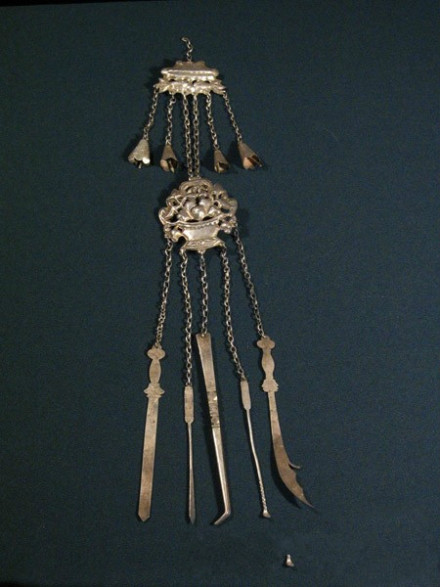 中華民族園收藏著上千枚中華各民族銀飾。大到鳳冠,銀衣、銀角、銀項(xiàng)圈,小如簪釵、戒指、耳環(huán)、銀扣琳瑯滿目,其中不乏明代、清代珍品。征集于北京、貴州、廣西、湖南、 山西、山東、陜西等地。跨越時(shí)間有上千年之久。