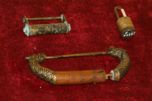 中華民族園展出的是明代至近代各具特色的木鎖、廣鎖、花旗鎖、首飾鎖等,征集于北京、云南、浙江、河南、黑龍江、新疆等地?缭綍r(shí)間有500余年之久。