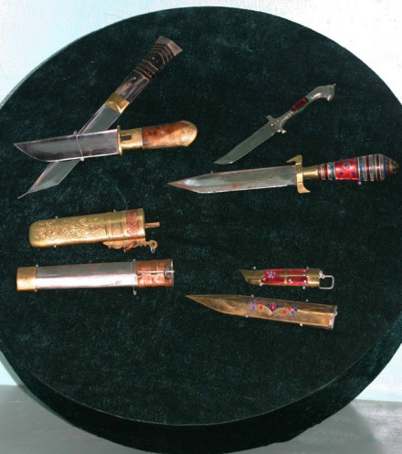 中華民族園收藏的三大民族刀具及在其影響下形成的“玉樹藏刀”、“蒙古刀”,造型各異,工藝精湛。其中清代、民國(guó)珍品頗多。征集于云南、西藏、內(nèi)蒙古、新疆、甘肅、北京等地。跨越時(shí)間有三百年之多。