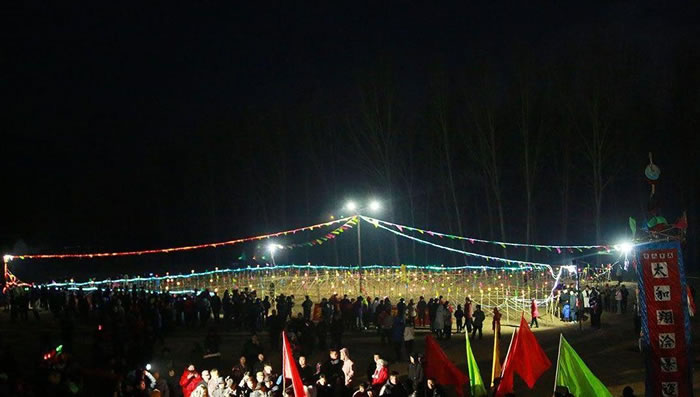 九曲黃河陣燈俗 九曲黃河陣燈俗俗稱“燈場(chǎng)子”,流傳于太師屯鎮(zhèn)東田各莊村。 明代洪武四年(1371),山西移民將“燈場(chǎng)子”傳入東田各莊,傳承至今,已有六百多年的歷史。 村中劉繼華老人保存的九曲黃河陣燈會(huì)圖譜已有百年歷史,圖中陣式按周易九宮八卦方位,以富貴不斷頭的傳統(tǒng)圖案九曲而成。陣內(nèi)乾、坎、艮、震、巽、離、坤、兌八宮加上中宮共有九宮,系模擬古代戰(zhàn)陣而成。 每年春節(jié)期間,東田各莊農(nóng)歷正月初十開始扎燈,正月十四、十五、十六三天正式舉行燈會(huì),正月十七后撤燈。燈會(huì)期間,人們從四面八方趕來(lái)觀燈賞會(huì),走燈陣,看大戲。走進(jìn)燈陣入口以后,如能順利地通過(guò)連環(huán)陣,再?gòu)某隹诜祷兀鸵馕吨荒觏橅槷?dāng)當(dāng)、平平安安,故當(dāng)?shù)赜?ldquo;順著燈陣走,能活九十九”的說(shuō)法。 東田各莊九曲黃河陣燈俗有兩個(gè)主要特點(diǎn),一是燈場(chǎng)與花會(huì)相結(jié)合,二是燈會(huì)與戲曲表演相結(jié)合。九曲黃河陣燈會(huì)帶有某種智能游戲的性質(zhì),燈陣及其外延的燈會(huì)包含著豐富的文化內(nèi)涵,具有較高的歷史文化研究?jī)r(jià)值。 2008年6月7日,九曲黃河陣燈俗被國(guó)務(wù)院公布為第二批國(guó)家級(jí)非物質(zhì)文化遺產(chǎn)名錄。 風(fēng)景名勝