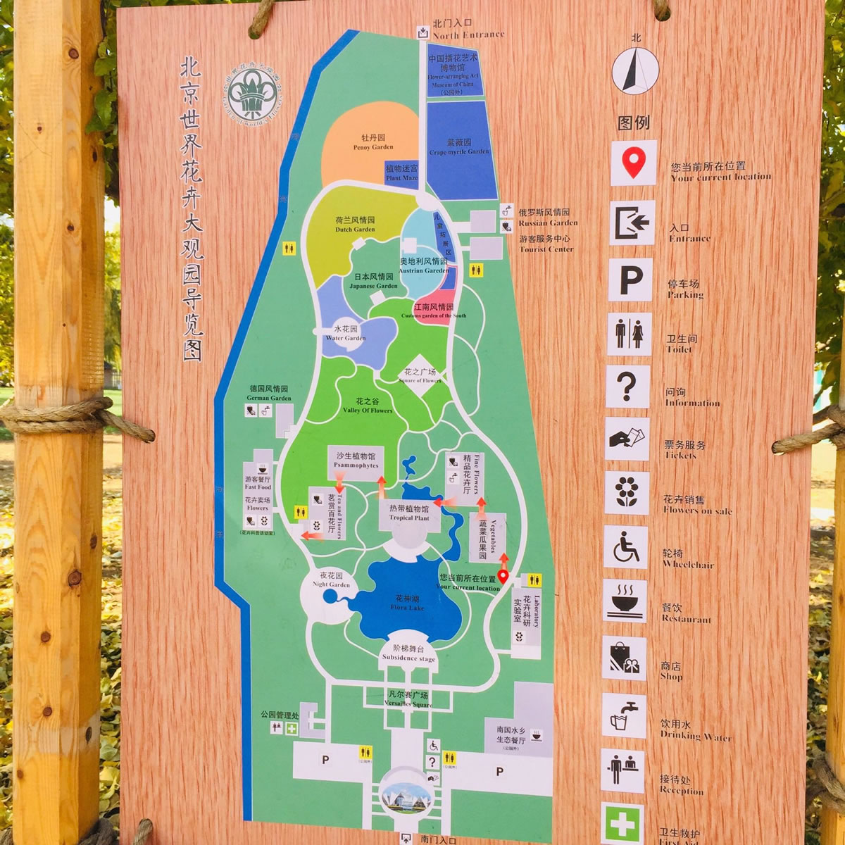 園內(nèi)凡爾賽花園是依據(jù)法國的凡爾賽花園而建造的。其中有充滿羅馬建筑風情的歐式廊架,有用2萬株檜柏組成的富有中國傳統(tǒng)吉祥圖案的模紋花壇和可供600人娛樂的夏日文化廣場等;▓@中還種植近百株動物造型樹和具有中國傳統(tǒng)特色的數(shù)百年以上的銀杏、紫薇等古老樹樁。