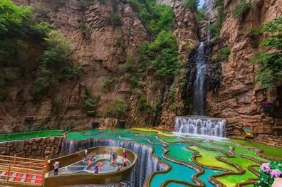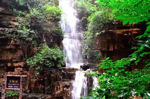 二是九天飛瀑,為四級(jí)瀑布,最高一級(jí)瀑布落差達(dá)40余米,瀑布總落差達(dá)80余米,瀑布飛瀉而下,氣勢(shì)宏偉,其聲于谷中輕響徹云霄不絕;