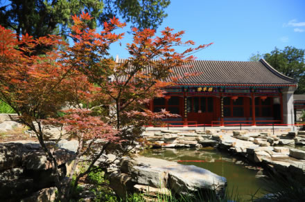 自1989年起,每年都舉辦以觀紅葉為主題的紅葉文化節(jié)。展覽的紅葉主要有五角楓、三角楓、雞爪楓、柿樹等,面積最大的紅葉樹種是黃櫨,有近10萬(wàn)株。這些紅葉樹種葉子里含有大量的葉綠素、葉黃素、類胡蘿卜、胡蘿卜素、花青素,春夏兩季葉綠素進(jìn)行光合作用,并使葉子呈現(xiàn)綠色;霜秋季節(jié),天氣變冷,晝夜溫差變化增大,葉綠素合成受阻,逐漸破壞消失,而類胡蘿卜、胡蘿卜素、花青素成份增多,使葉子呈現(xiàn)紅黃、橙紅等色彩。