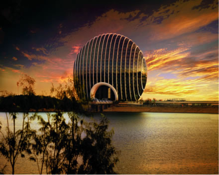 北京日出東方凱賓斯基酒店:建筑外形宛如一輪冉冉升起的太陽,象征著和諧統(tǒng)一,故名為日出東方酒店。從側(cè)面看,酒店建筑是扇貝的形狀,扇貝在中國文化里代表了財富;配合酒店建筑正面的圓形“旭日東升”寓意,也代表著中國的蓬勃發(fā)展。如果從空中俯瞰,酒店的裙樓形狀酷似“祥云”,也代表了中國文化中“彩云追日”的浪漫寓意。