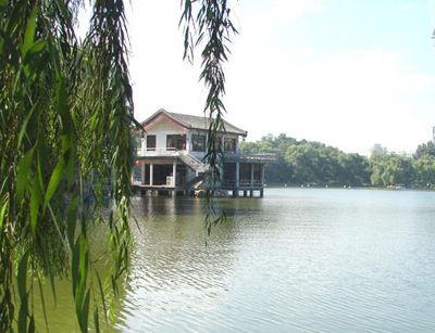 問月樓:為一水榭,幽雅別致。湖西部有“報恩樓”、“紫竹垂釣”;南部有“澄碧山房”、“兒童樂園”。