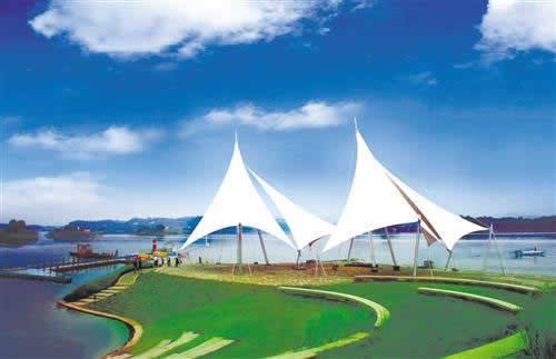 長壽湖廣場于2010年6月動工,同年10月竣工。總面積4.8萬平方米,其中硬鋪裝2.2萬平方米,其余均為綠地。整個廣場通過自然式的構(gòu)圖,并結(jié)合波紋狀的鋪裝以及“島”式的微地形營造,與整個長壽湖大環(huán)境融為一體,是一個構(gòu)圖新穎、使用功能要求低碳并集文化休閑為一體的風(fēng)景區(qū)廣場。