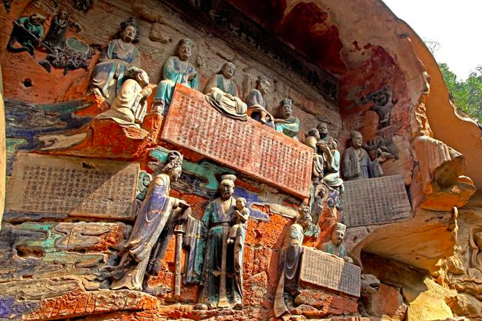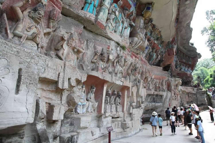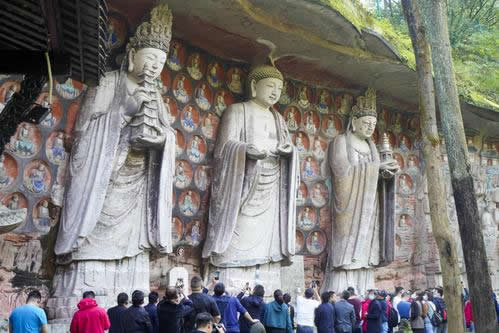 重慶市的大足石刻以其規(guī)模宏大、雕刻精美、題材多樣、內(nèi)涵豐富和保存完整而著稱于世。它集中國佛教、道教、儒家“三教”造像藝術(shù)的精華,以鮮明的民族化和生活化特色,成為中國石窟藝術(shù)中一顆璀璨的明珠。它以大量的實物形象和文字史料,從不同側(cè)面展示了九世紀末至十三世紀中葉中國石刻藝術(shù)的風(fēng)格和民間宗教信仰的發(fā)展變化,對中國石刻藝術(shù)的創(chuàng)新與發(fā)展做出了重要貢獻,具有前代石窟不可替代的歷史、藝術(shù)和科學(xué)價值。許多歐洲人、尤其是法國人,對大足石刻寵愛倍加。