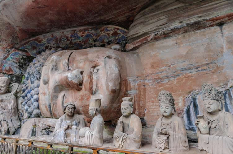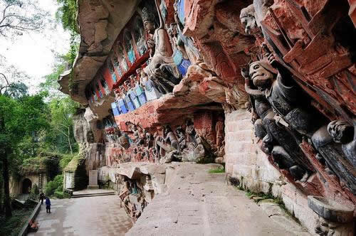 大足石刻位于重慶市大足區(qū)境內(nèi),是唐、五代、宋時所鑿造,明、清兩代亦續(xù)有開鑿。現(xiàn)為世界文化遺產(chǎn),世界八大石窟之一。