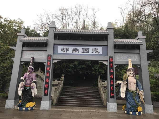 相傳漢代有陰長(zhǎng)生、王方平兩人曾先后在此修道成仙,白日飛升。至唐代,因有人誤將“陰”“王”兩姓聯(lián)綴為“陰王”,于是名山就逐步被傳說誤會(huì)為“陰王”(陰間之王)所居之地,即演變成“陰曹地府”的鬼都。并在其后的歲月中,陸續(xù)建起了許多與“陰曹地府”相關(guān)的寺廟殿宇。