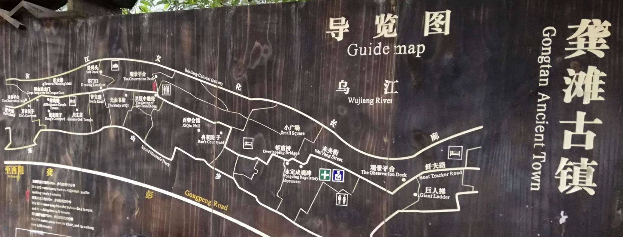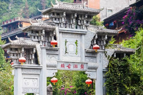 龔灘古鎮(zhèn)源自蜀漢,建置于唐,距今1800年的歷史。古鎮(zhèn)街道歷代修葺,至2005年總長(zhǎng)約3千米,皆以石板街、吊腳樓、坡屋面、小青瓦為風(fēng)貌特征。其中老街長(zhǎng)1.5千米,存寺廟、祠堂、古碼頭、古纖道、古梯道、古橋梁、古牌坊、古樹(shù)、古井、古碑石等。青石板街將古鎮(zhèn)按照不同的歷史背景、民族文化以商業(yè)業(yè)態(tài)形式布局為五段,以榨油、織布為特色的“油坊路”,以背夫腳夫文化為主題的“背夫路”,以西秦會(huì)館為代表建筑的“西秦路”,展示纖夫文化的“纖夫路”,以鹽商鹽號(hào)為特色的“老鹽路”。有50余堵別具一格的封火墻、200多個(gè)古樸幽靜的四合院、50多座形態(tài)各異的吊腳樓,獨(dú)具地方特色,是中國(guó)國(guó)內(nèi)保存完好且頗具規(guī)模的明清建筑群。
