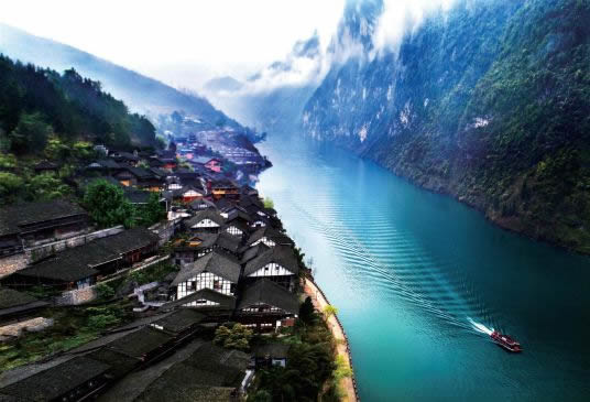 烏江畫(huà)廊指從龔灘至貴州沿河100余千米的烏江河段,是烏江流域景色最為壯麗的一段。船行其中,水碧山青如水墨長(zhǎng)卷,有“船在水中行,人在畫(huà)中游”之感,因此有“千里烏江,百里畫(huà)廊”之譽(yù)。