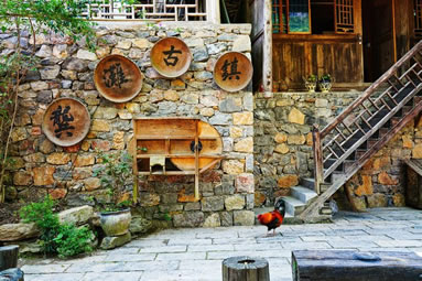 吊腳樓是源于古代的干欄式建筑,是鄂湘渝黔土家族地區(qū)普遍使用的一種民居建筑形式,距今已有四千多年的歷史。土家吊腳樓多為木質(zhì)結(jié)構(gòu),依山而建,鑿石為基,壘石為礎(chǔ),分上下兩層,上層通風(fēng)、干燥、防潮,是居室;下層是豬牛欄圈或用來(lái)堆放雜物。早先土司王嚴(yán)禁土民蓋瓦,只許蓋杉皮、茅草,叫“只許買(mǎi)馬,不準(zhǔn)蓋瓦”。一直到清雍正十三年(1735年)“改土歸流”后才興蓋瓦。一般為橫排四扇三間,三柱六騎或五柱六騎,中間為堂屋,供歷代祖先神龕,是家族祭祀的核心。根據(jù)地形,樓分半截吊、半邊吊、雙手推車(chē)兩翼吊、吊鑰匙頭、曲尺吊、臨水吊、跨峽過(guò)洞吊,富足人家雕梁畫(huà)棟,檐角高翹,石階盤(pán)繞,大有空中樓閣的詩(shī)畫(huà)意境。
