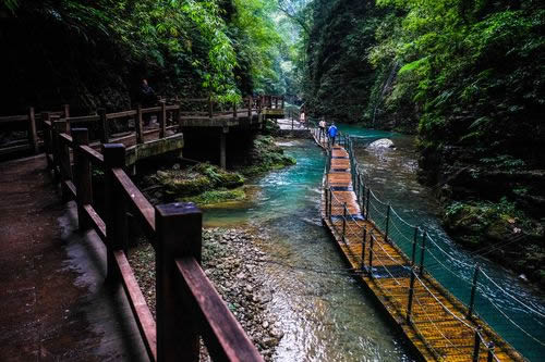 黑猴峽是黑山谷第二個(gè)峽谷,峽谷全長420米,最窄處僅2米,兩岸險(xiǎn)峰重疊,犬牙交錯(cuò),岸壁傾斜超過90度,長年累月難見天日,即使在烈日高照、炎熱難耐的盛夏,這里也是寒氣襲人。因有國家一級(jí)保護(hù)動(dòng)物黑葉猴經(jīng)常攀跳、嬉戲于此而得名。