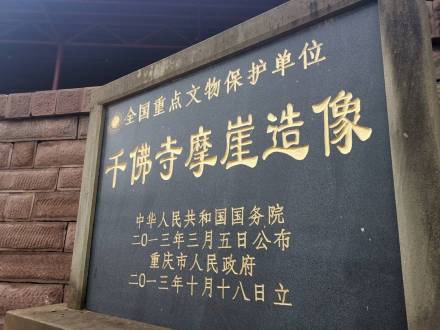 千佛寺摩崖石刻造像,因崖壁上開鑿有很多佛像而得名,共有43龕,各類造像311身,題記31則,開鑿年代到可從元明追溯到中唐,以晚唐、北宋時期造像為主。千佛寺摩崖石刻已于2013年3月5日,列入第七批全國重點文物保護單位(并入潼南大佛寺摩崖造像)。