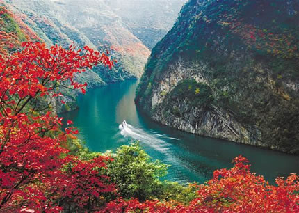 巫山的氣溫給紅葉創(chuàng)造最佳生長(zhǎng)和形成時(shí)機(jī)。三峽庫(kù)區(qū)蓄水達(dá)到170.9米,江、山、紅葉三位一體,高峽平湖與漫山紅葉交相輝映。巫山紅葉集中連片有6700公頃,其中以小三峽的巴霧峽最為集中。秋季漫山紅葉,層林盡染,游客既可乘車(chē)上山,隨公路盤(pán)旋觀賞紅葉景觀,亦可坐船仰望兩岸紅葉,還可以徒步林中小道近距離觀賞紅葉。