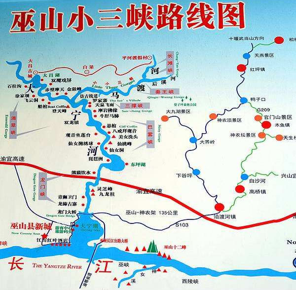 巫山小三峽·小小三峽景區(qū)全長(zhǎng)65千米。有水峽景觀、峰巖景觀、洞穴景觀、動(dòng)植物景觀、人文景觀、空間景觀。其中水體景觀包括水、泉、溪、潭、灘、簾瀑、卵石等多種類(lèi)型,峰巖景觀包括峭壁、山峰、奇石、圖案、肌理、色彩等多種類(lèi)型,洞穴景觀包括發(fā)育程度各異、大小各異、高度各異、風(fēng)格各異的眾多喀斯特溶洞、地下河。