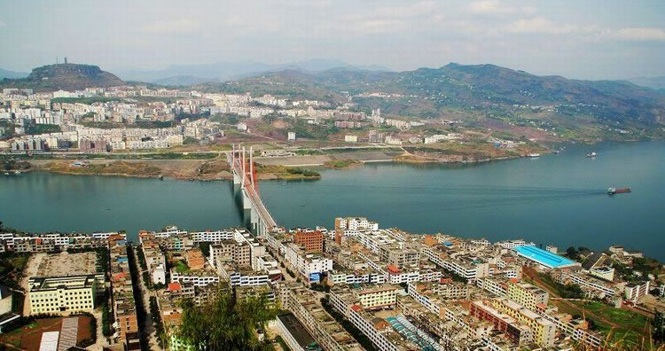 云陽縣,地處四川盆地東部丘陵向山地過渡地帶,地勢南北高、中部底,由南、北向中間傾斜,最高點農(nóng)壩鎮(zhèn)境內(nèi)云峰山野豬槽包海拔1809米,最低點長江出境處海拔139米。境內(nèi)重巒疊嶂、溝壑縱橫,長江、湯溪河、澎溪河、磨刀溪、長灘河將縣境分為六大塊,呈現(xiàn)“一江四河六大塊,七山一水二分田”地貌特征。