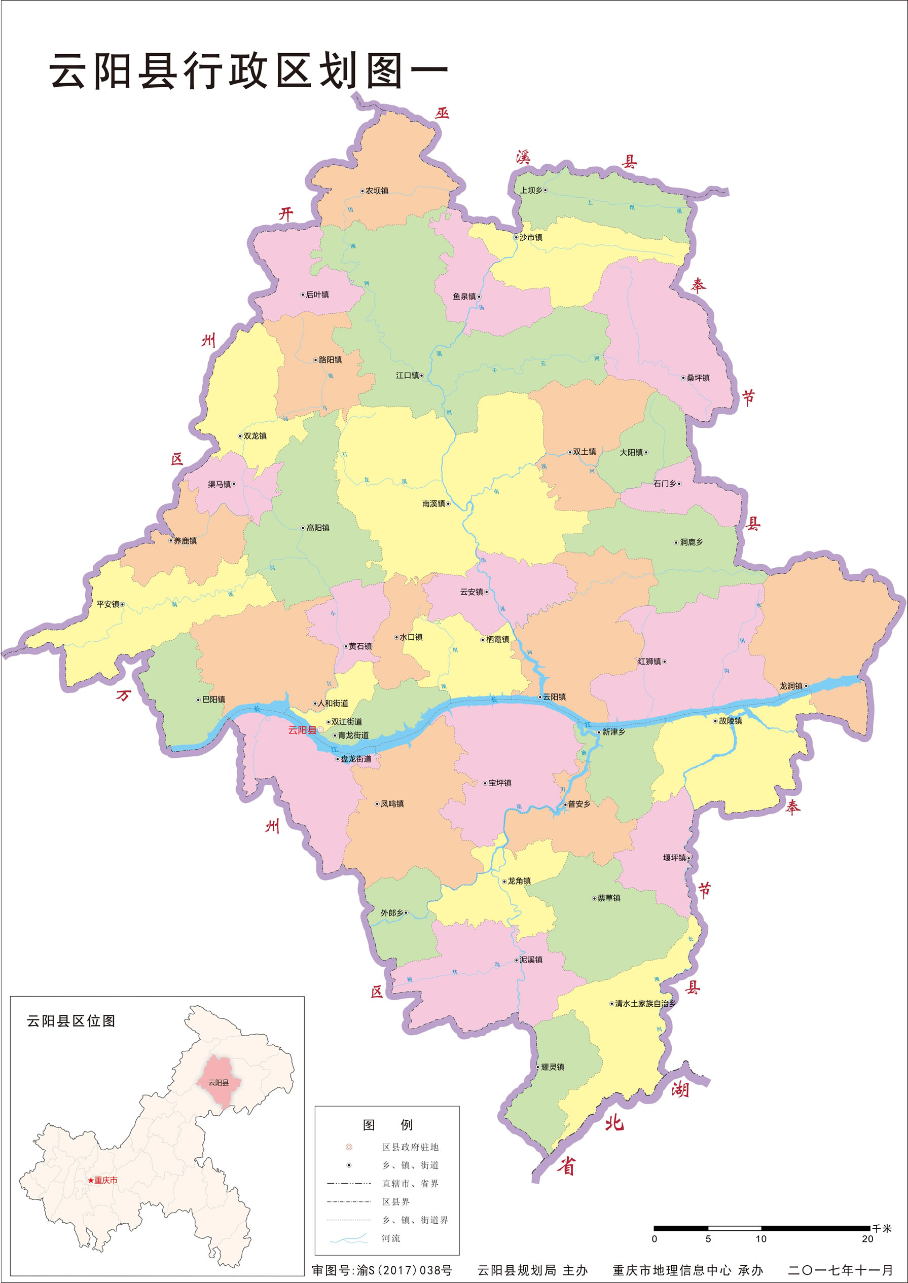 鎮(zhèn):龍角鎮(zhèn)、故陵鎮(zhèn)、紅獅鎮(zhèn)、路陽鎮(zhèn)、農(nóng)壩鎮(zhèn)、渠馬鎮(zhèn)、黃石鎮(zhèn)、巴陽鎮(zhèn)、沙市鎮(zhèn)、魚泉鎮(zhèn)、鳳鳴鎮(zhèn)、寶坪鎮(zhèn)、南溪鎮(zhèn)、雙土鎮(zhèn)、桑坪鎮(zhèn)、江口鎮(zhèn)、高陽鎮(zhèn)、平安鎮(zhèn)、云陽鎮(zhèn)、云安鎮(zhèn)、棲霞鎮(zhèn)、雙龍鎮(zhèn)、泥溪鎮(zhèn)、蔈草鎮(zhèn)、養(yǎng)鹿鎮(zhèn)、水口鎮(zhèn)、堰坪鎮(zhèn)、龍洞鎮(zhèn)、后葉鎮(zhèn)、耀靈鎮(zhèn)、大陽鎮(zhèn)、