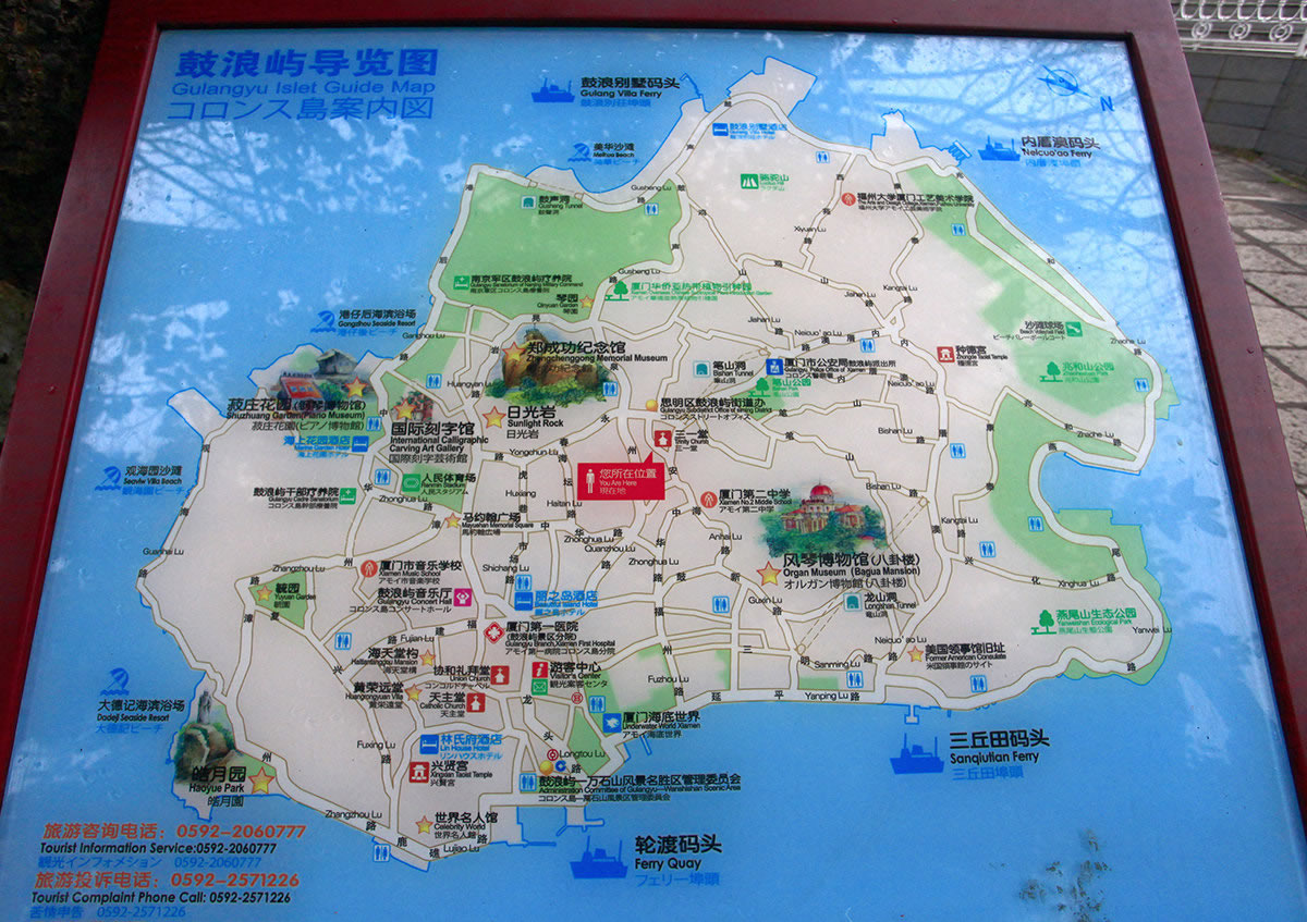 景區(qū)交通:鼓浪嶼已修好一條環(huán)島路,全長6公里,由道路、隧道、曲橋組成,以電瓶車代步。