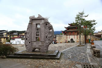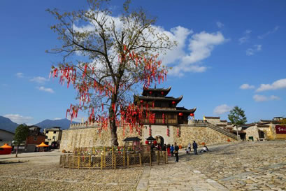 和平古鎮(zhèn)現(xiàn)存東北兩座譙樓。東門譙樓是三重檐歇山式,而其他三座譙均是兩重檐的。東門譙樓,門洞用石條砌成,墻體用大塊的卵石筑成。城墻腳下的這塊“禁止搬運、保固地方”的石頭,是和平“舊市三禁碑”之一,為清代設(shè)立。由于當時社會地主少、農(nóng)民多,農(nóng)民每次把收成的大部分上交給地主,在青黃不接的時候,糧價上漲,地主就把大部分的糧食外運到邵武城關(guān)或福州,造成產(chǎn)糧地變?yōu)槿奔Z地,農(nóng)民面臨饑餓的威脅,因而設(shè)此碑,并輪流放哨,規(guī)定所有私自外運的糧食都必須沒收或低價收購,因而它起到維護當時的糧食市場的作用。北門譙樓,當?shù)厝朔Q“武陽樓”,因它對面的山叫武陽山,清同治年間翻修過。城門的門洞用條石砌成,比東門門洞高大。城門兩邊各保留了一段用鵝卵石筑成的明城墻,鵝卵石上長滿青苔,漫漶的縫隙間長著青青野草,四季皆有野花開放,充滿了詩情畫意。風雨譙樓,見證百年夕陽煙雨;古樸城門,迎送多少古鎮(zhèn)喜憂。譙樓走過的是悠悠歲月,形容雖然殘破斑駁,留下的卻是耐人尋味的古鎮(zhèn)歷史。