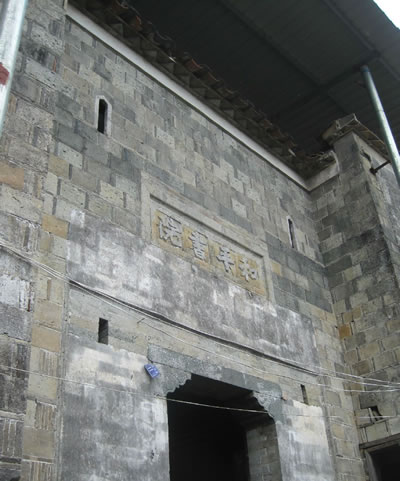 位于和平古鎮(zhèn)東門。此門李氏清晚期“一門九大夫”。建于清同治年間的李氏大夫第,為奉政大夫、知州李春江,奉直大夫、直隸州州同李奇川的宅府,俗稱“李恒盛”(寓為永遠繁盛)。其門樓磚雕精致細膩,人物形態(tài)栩栩如生,美輪美奐。八字面的墻上有四幅《三國演義》里的典故:“斬顏良”、“華容道”、“長坂坡”、“博望坡”和“宋太祖千里送京娘”,還有雕刻精美的松、竹、梅、鶴、鹿、麒麟等組合的畫面。所雕的龍在下、鳳在上,是典型的清同治間產(chǎn)物,歷史時代特征非常明顯。該大夫第建筑面積1000余平方米,四合院式天井院建筑,南側(cè)有木構(gòu)二層護厝。合院內(nèi)三進廳,均三開間,穿斗式構(gòu)架,大式作法。門欞、窗欞、雀替等構(gòu)件雕飾花草圖案和人物故事。石柱礎(chǔ),均有桎。廳堂柱上原有用大毛竹片雕刻的一副意義深刻的對聯(lián):天下第一等人忠臣孝子;世間只兩樣事耕田讀書。充分體現(xiàn)了儒家傳統(tǒng)文化――忠孝與長期的耕讀文化。站在第三廳的中央可遠望二進廳屋頂有一個四不象怪獸的屋脊裝飾,即古樸又神秘。