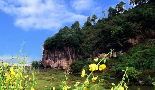 玉虛洞:在明溪縣北郊二公里黃坡山下。相傳古時這里龍蛇作祟被玉虛仙翁鎮(zhèn)服得名。玉虛洞分為明洞、暗洞、外景三個游覽點(diǎn)。明洞前有“觀音殿”,面積約150平方米,由三根天然石柱支撐。洞口有明代鐫刻“玉虛洞天”、“玉虛仙洞”、“玉宇天漿”等擘窠大字。洞口下方新建檐歇山式天柱閣。洞內(nèi)有天泉、斗獅、龜石、步丹臺等十幾景。后為“桃華洞”,廣容千人,巖石晶瑩、色彩斑斕,有佛頭巖、祥云巖、隱鵲巖、躍魚石等十幾景。其中虛鳴竅最妙,用蘆掃輕拍即發(fā)出巨響。