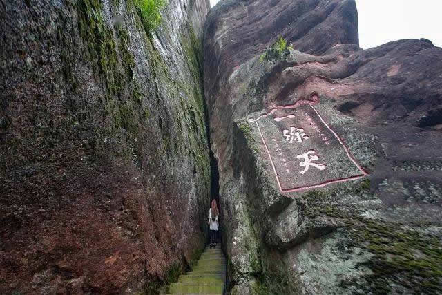 著名旅行家徐霞客于明崇禎三年(1630年)記敘了這一奇觀:“上辟山巔,遠(yuǎn)透山北,中不能容肩,蓋之乃受,累級(jí)斜上,直貫其中。余所見(jiàn)‘一線天’數(shù)處,武夷、黃山、浮蓋,未曾見(jiàn)若此之大而逼、遠(yuǎn)而整者”。每當(dāng)午時(shí),晴空麗日,陽(yáng)光直射,翹首仰望,只見(jiàn)天光一線,壯麗無(wú)比。