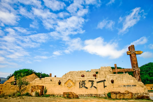 俠谷小溪潺潺、野花滿目。起始處為震撼人心的江湖巨無(wú)壩,緊接著是游俠入門基本功訓(xùn)練項(xiàng)目—俠谷素質(zhì)拓展。之后,一路擊鼓、撞鐘、射雕、敲鑼、過(guò)四道橋、探藏寶洞、走梅花樁…..互動(dòng)不斷、喜氣連連。結(jié)尾處是一座高懸半空、擁有數(shù)百年歷史的引水渠壩,同樣動(dòng)人心魄。