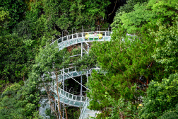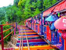 穿梭于蔥郁叢林之間的小火車,全程3公里,最高處離地將近30米。盤旋于峭壁之上,穿百米高崖,鉆萬(wàn)畝密林。