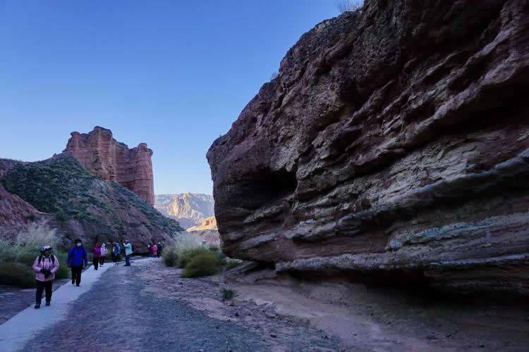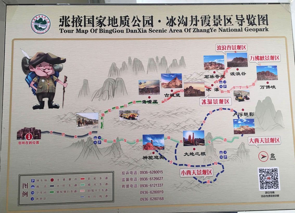 小西天景區(qū)位于冰溝景區(qū)的東部,主要景觀為一條滿(mǎn)布丹武地貌的山溝,均為長(zhǎng)約800米的山體游步道,游覽時(shí)間大約60分鐘。主要景點(diǎn)有神駝?dòng)e、紅層地貌、泥瀑布、泥鐘乳、泥葡萄、桃園結(jié)義(新娘出嫁、樓蘭商駝、千里相會(huì))、玄武門(mén)(龜蛇鎖江)、紅纓帽(裕固族帽子)、陰陽(yáng)柱(大地之根)、石雞(筆架峰)、七女峰(侍女拜佛)、僧人崖、金蟾拜佛、大佛石等,最有名氣的有神駝?dòng)e、桃園三結(jié)義、玄武門(mén)、蘑菇石、大地之根、七女峰、望夫石等景觀。